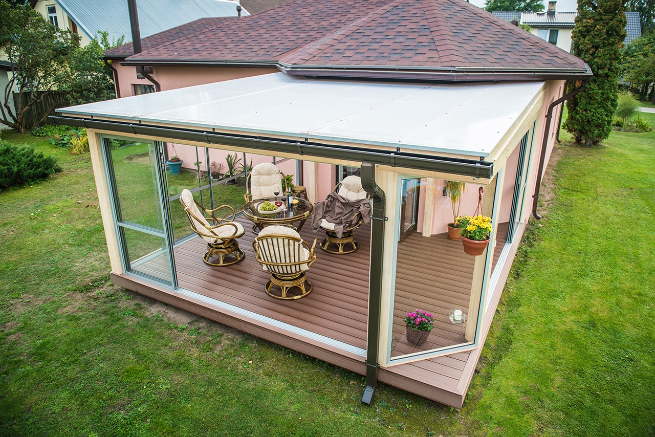 Bīdāmo durvju sistēmas ļauj vienkārši transformēt verandu par terasi. Izturīga un viegla nesošā konstrukcija, kas neaizsedz skatu uz ārtelpu.